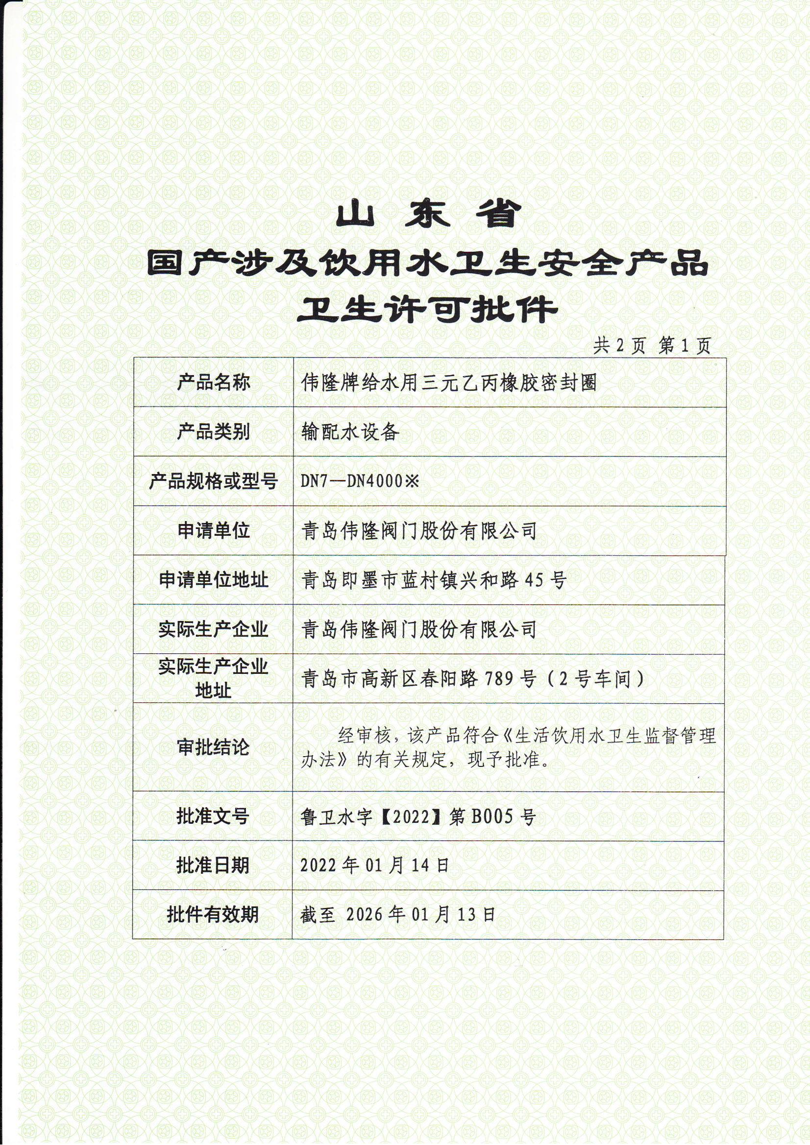 卫生允许批件