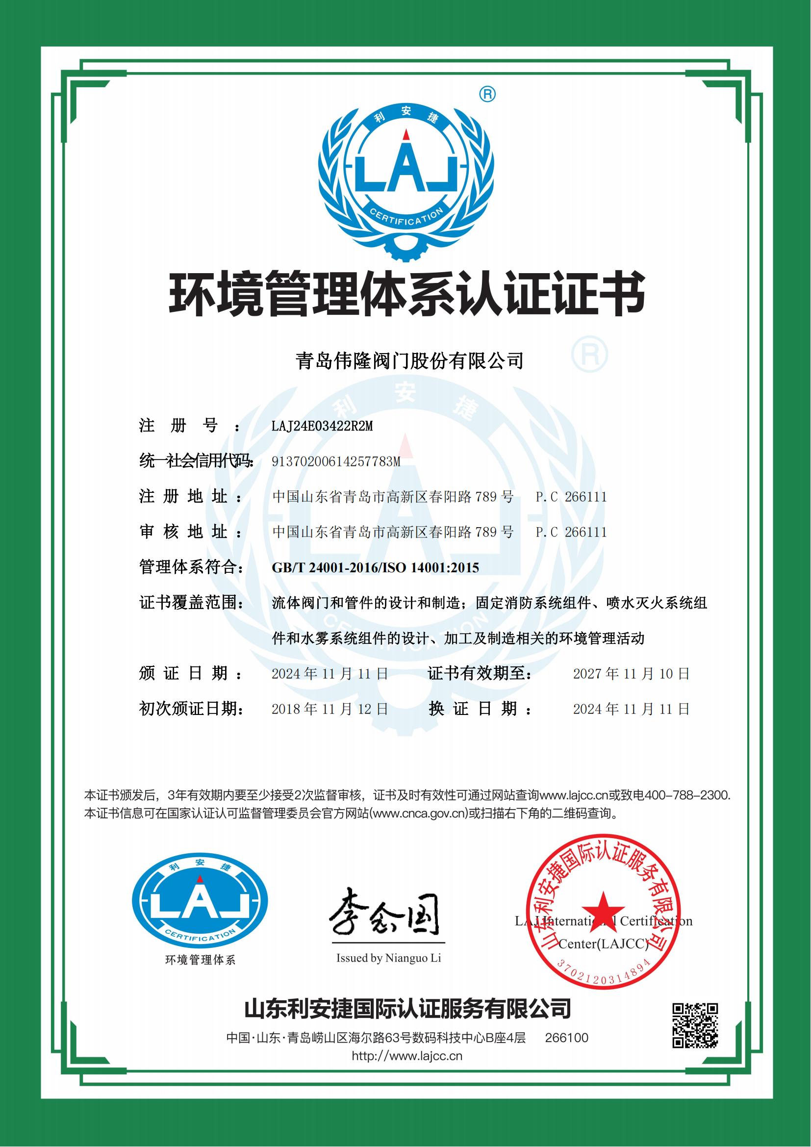 情形管理系统认证证书